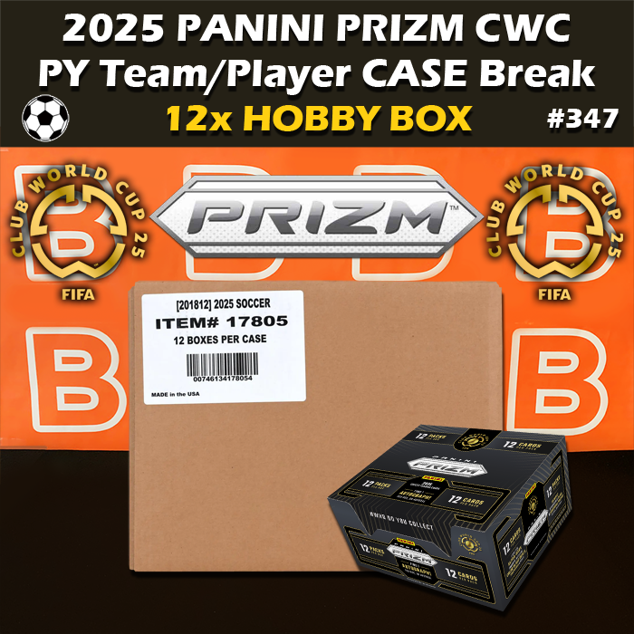 GROUP BREAK # 347 - 2025 Panini Prizm Club World Cup FIFA CWC Hobby Case (12-box) PYT / PYP. Pick Your Team PYT and Pick Your Player PYP. Breaks as scheduled/announced on Discord/IG.
